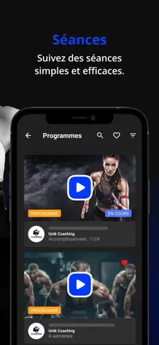 L’application Unik Coaching vous permet de suivre votre programme d’entraînement et votre plan nutritionnel, d’échanger en temps réel avec votre coach et d’accéder à vos statistiques de progression. Grâce à une interface intuitive et des fonctionnalités avancées, vous bénéficiez d’un accompagnement personnalisé où que vous soyez.